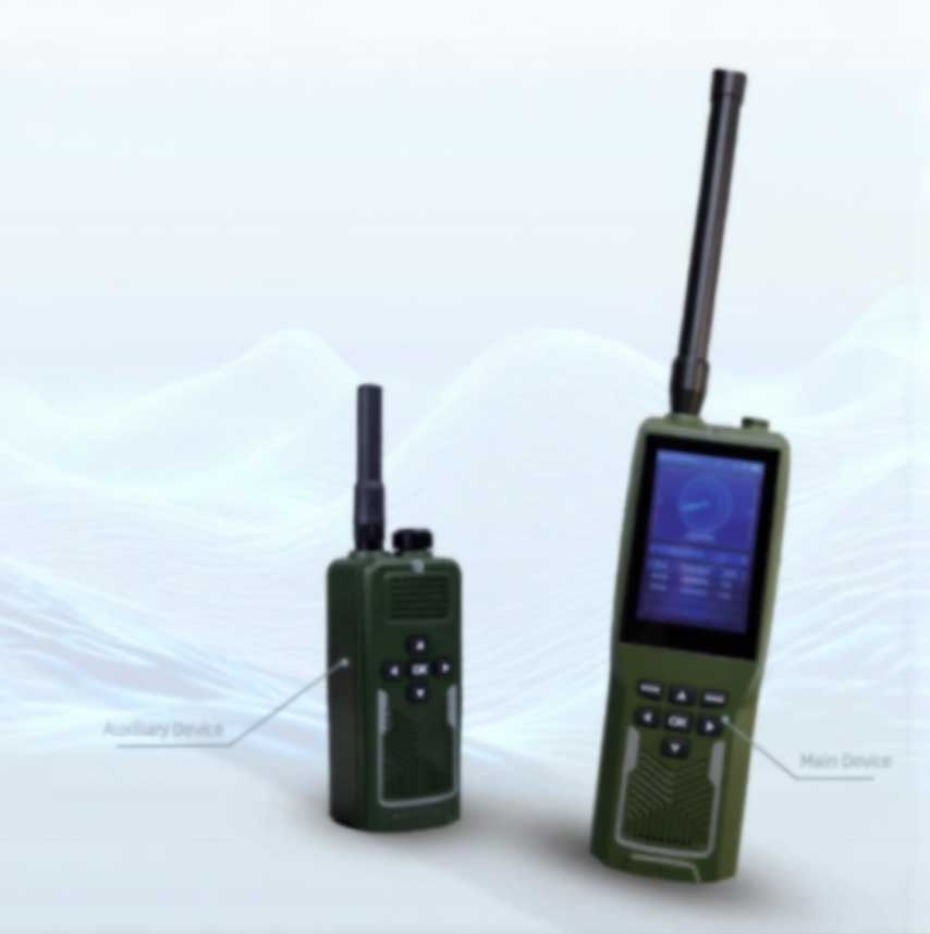 Basing on radio frequency spectrum sensing and Al technology, the device has the functions of detection, display and control, etc. Encrypted voice com- munication can be set up to realize alarm linkage between groups. It adopts self-developed low power consumption digital receiver technology and lea- ding power management technology, and has an external ultra-wideband antenna. It can accurately identify multiple types of drones such as quad-ro- tor, fixed-wing, DIY, and FPV drones, and then offer optional sound, light, vi- bration, and voice alarm. Auxiliary Device
